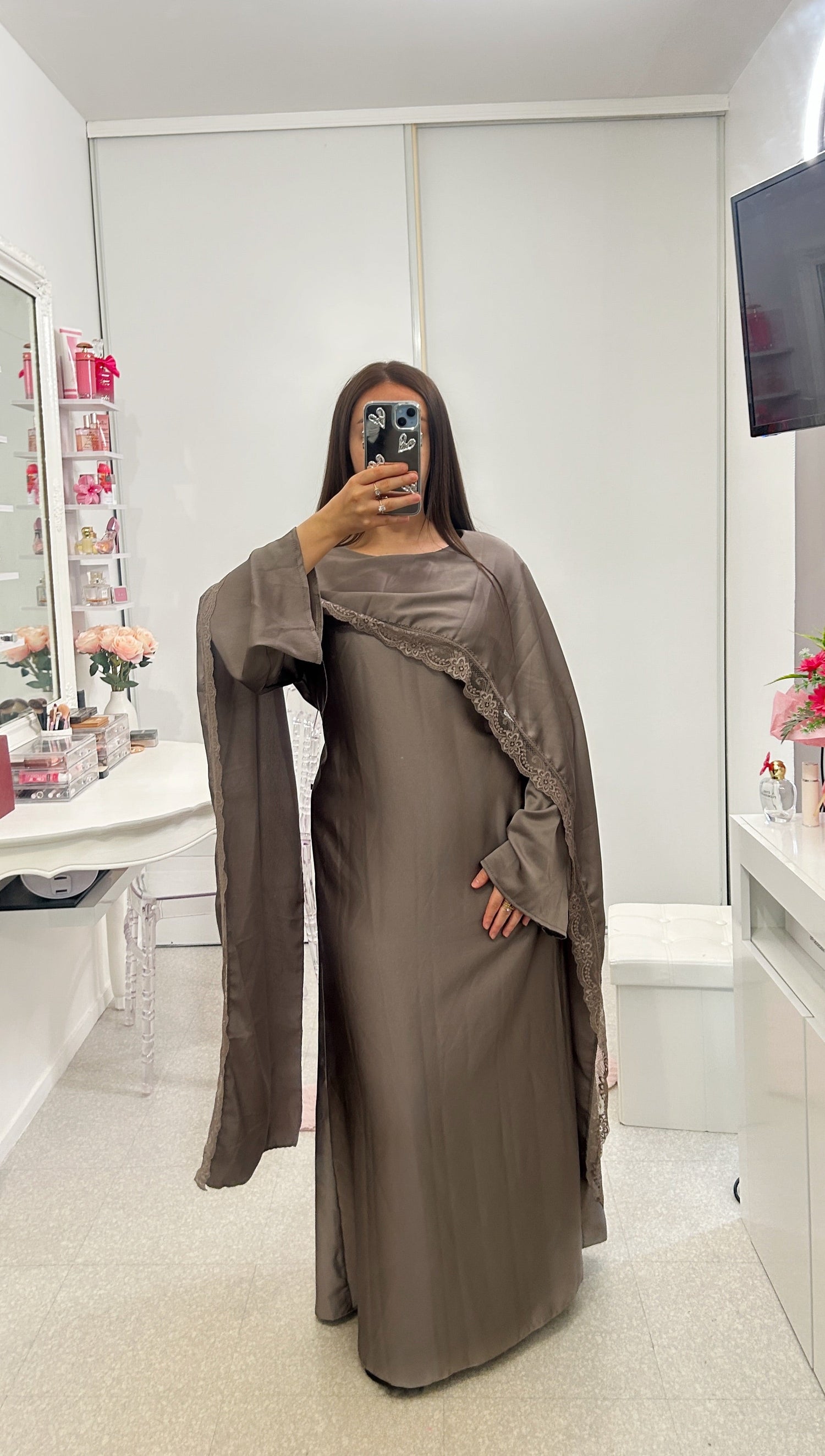 Abaya satinée avec dentelle
