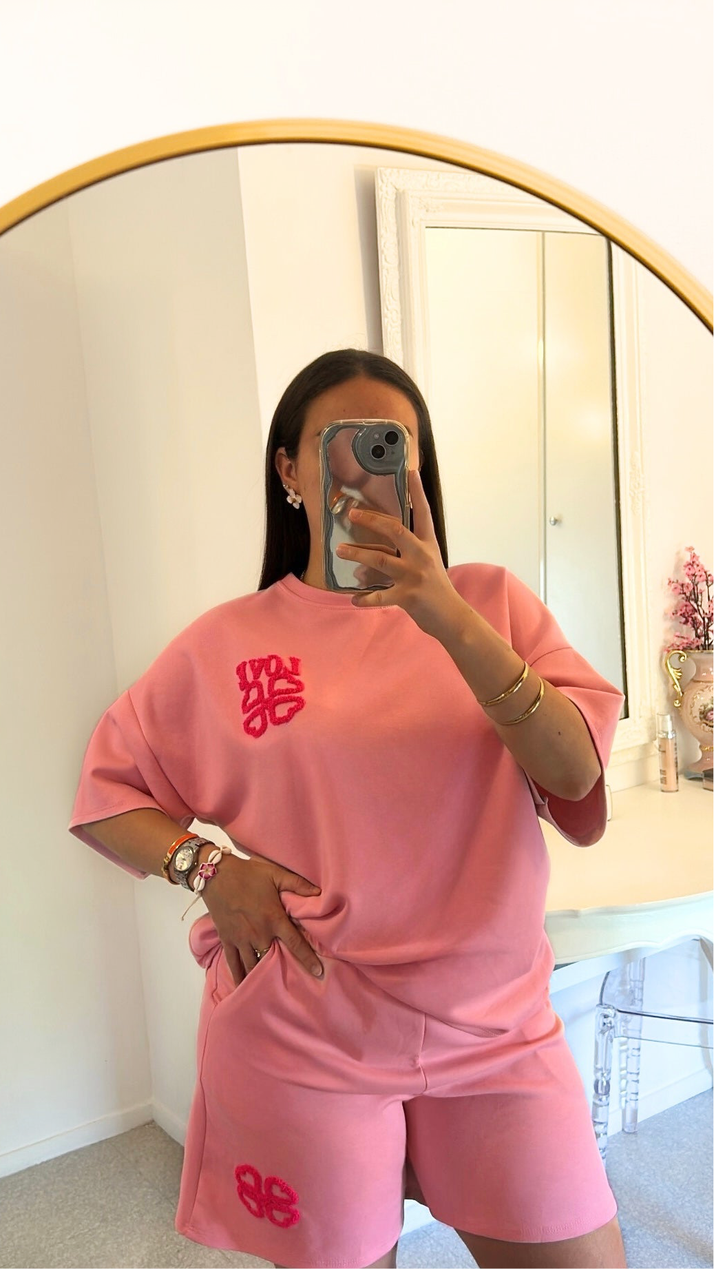 L'Ensemble short rose est pensé pour une tenue décontractée sophistiquée. Son pantalon taille élastique et son haut oversize col rond, s’adapte à toutes les silhouettes.