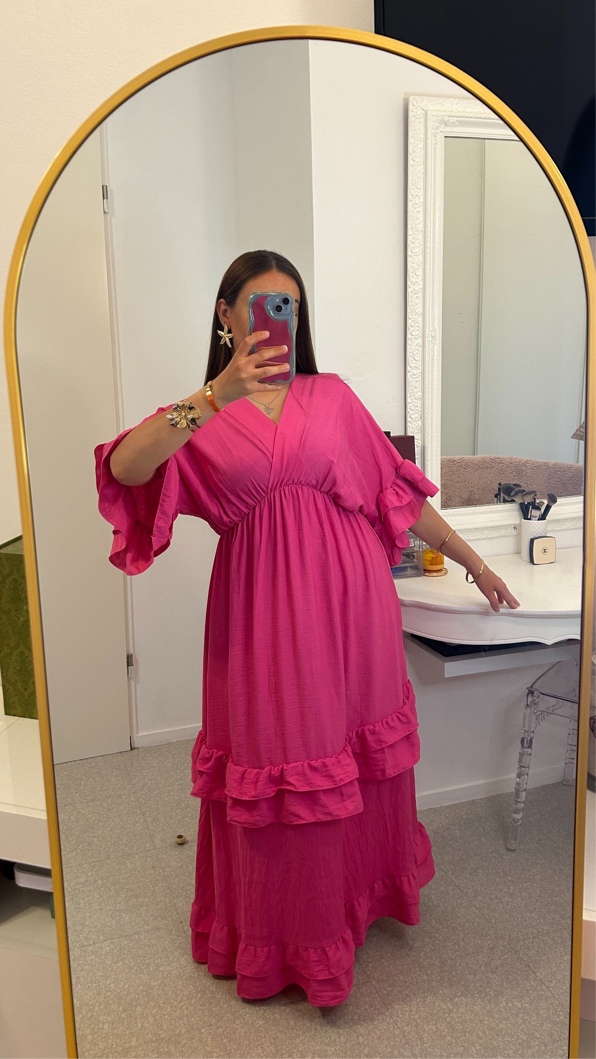 Robe longue à froufrou rose